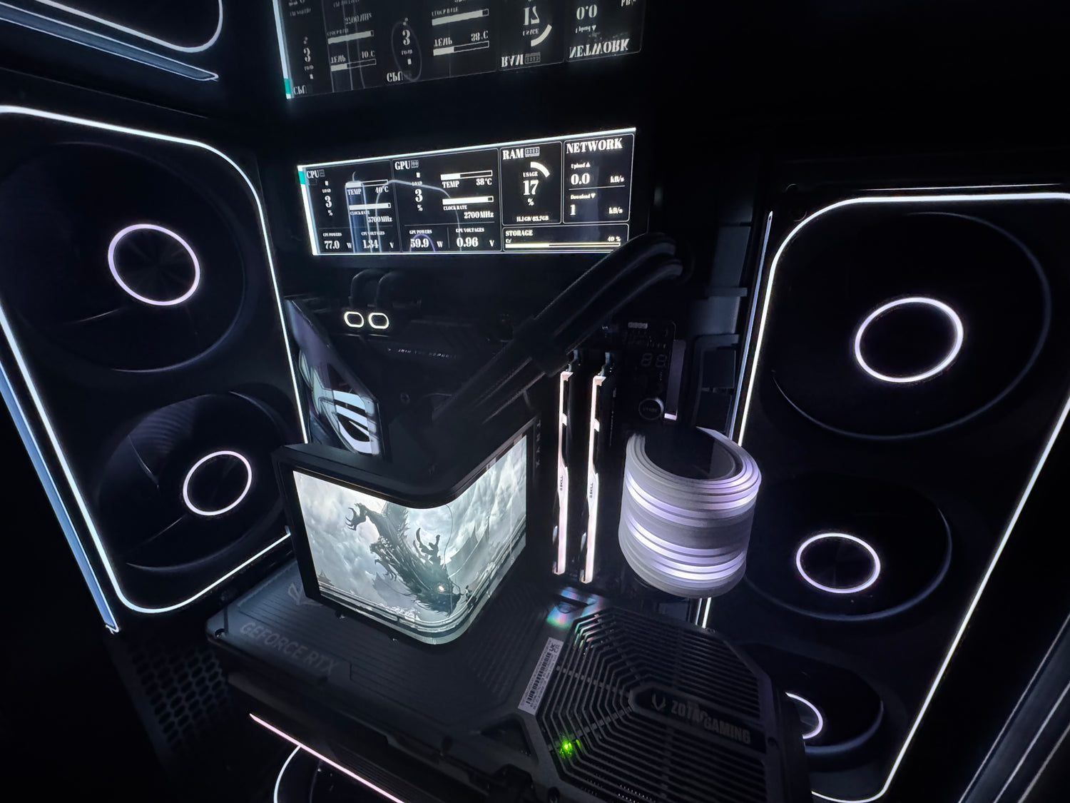 A stunning all-white build in the iconic Snowblind S case, featuring a full LCD side panel you can customize with animations or system stats. Powered by a Ryzen 5 7600X, Radeon RX 9060 XT, 32GB DDR5, and a 1TB Samsung 990 EVO Plus for lightning-fast load times. A unique showcase PC built for smooth 1080p/1440p gaming and maximum style.